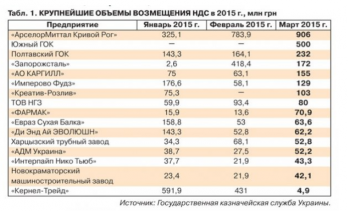 В публикации сказано, что несмотря на то, что поступления в сводный бюджет за январь-март почти на 33 миллиарда гривен превысили прошлогодние показатели, объемы возмещения НДС продолжают сокращаться, причем в марте — почти на треть.