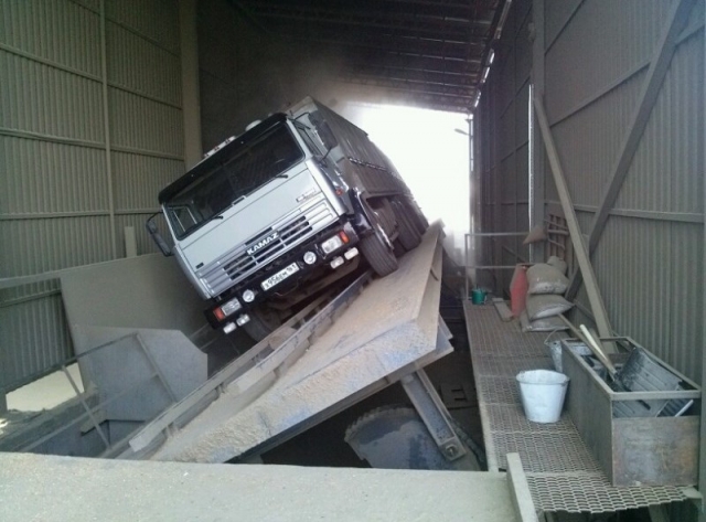 – Такое уникальное оборудование предназначено для взвешивания и выгрузки зерновых с любого автотранспорта, с прицепом или полуприцепом, через задний борт, – рассказал он.