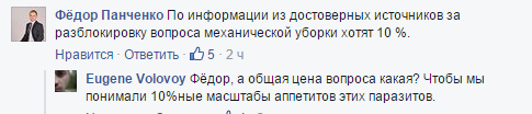— По информации из достоверных источников, за разблокировку вопроса механической уборки хотят 10%, - отмети он.