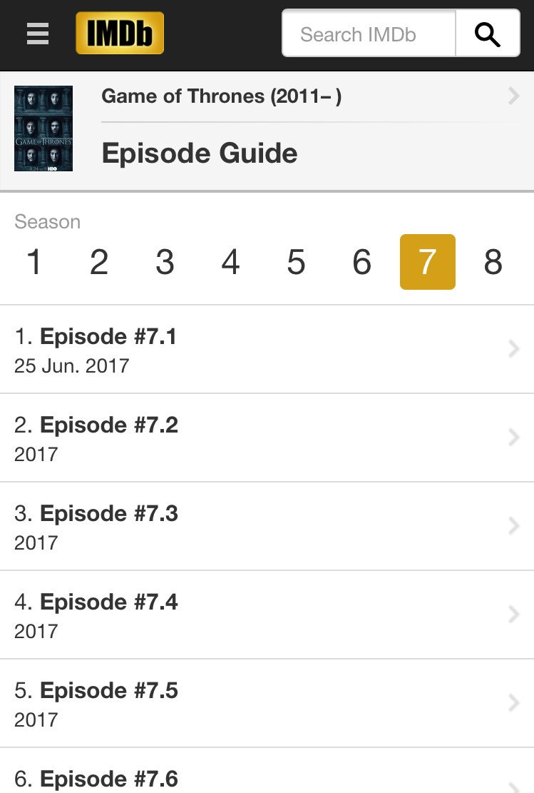 Кинокаталог IMDb опубликовал дату выхода премьерного эпизода седьмого сезона сериала «Игра престолов».