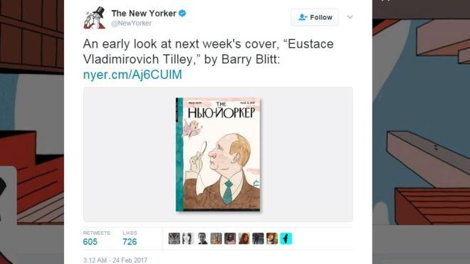 Как поясняет издание, в 1925 году на обложке первого номера New Yorker была изображена карикатура, на которой человек по имени Юстас Тилли через монокль разглядывает мотылька.