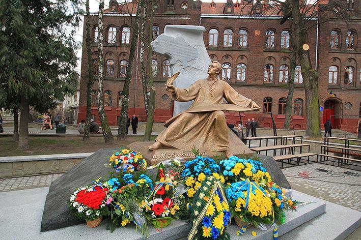 К монументу выдающемуся украинцу, который открыли в декабре 2015 года, легли букеты цветов. Здесь представители власти, общественные активисты и школьники вместе исполнили «Ще не вмерла Украина». После этого состоялось общественное вече.