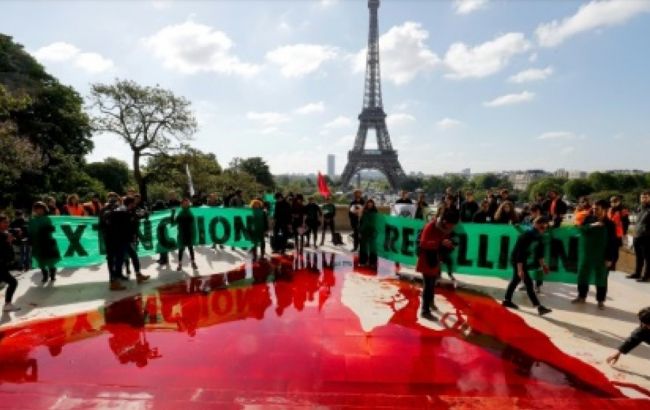 В Париже экоактивисты разлили 300 литров бутафорской крови