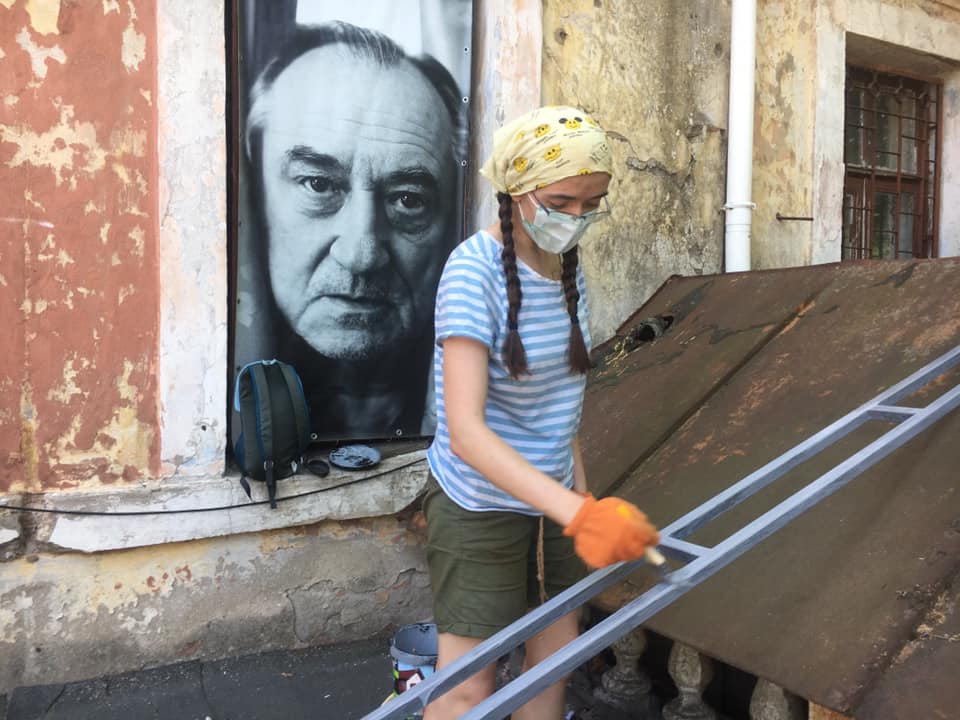 Вчера, 4 июля, во внутреннем дворике Дома офицеров флота в Николаеве активисты провели «генеральную уборку» перед началом кинопоказов под открытым небом.