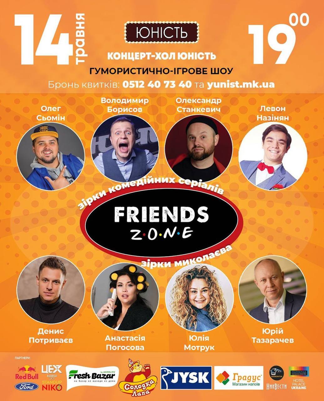 14 мая в Николаеве состоится юмористическое игровое шоу «Friends Zone» с участием звезд комедийных сериалов и известных николаевцев.