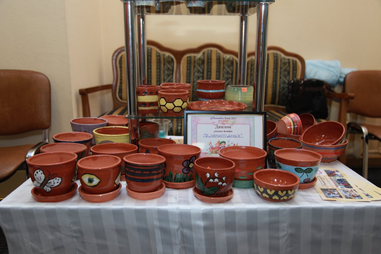 На выставке также представили работы детей с аутизмом, которыми занимается общественная организация «Намисто друзів». На протяжении года, с момента начала карантина, дети изготовили разную посуду. Средства от продажи этих работ пойдут на развитие инклюзивной гончарной.