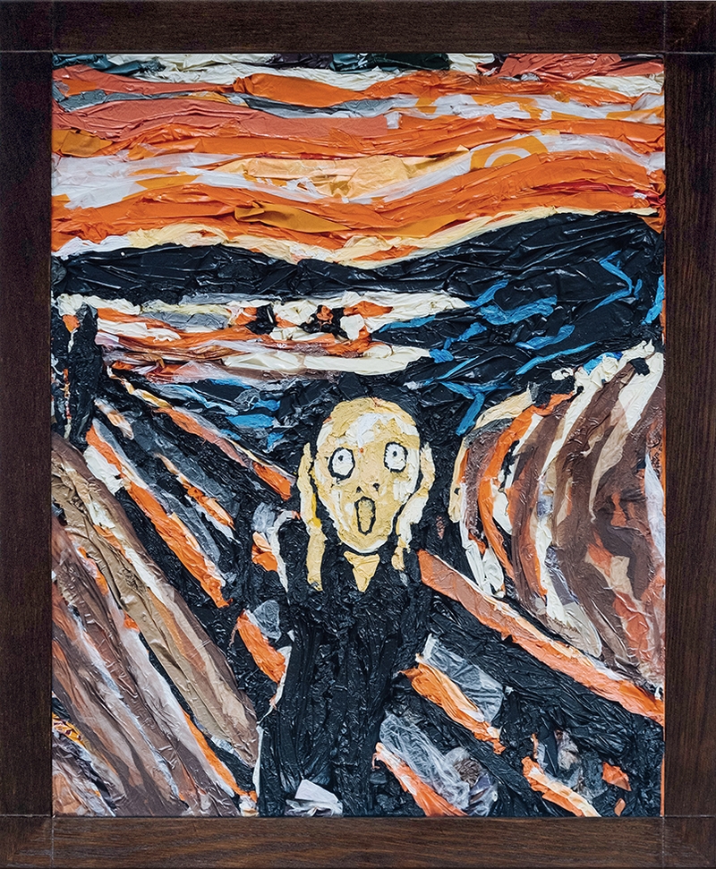 На своей последней выставке он удивил публику копиями работ Пикассо, Ван Гога, Моне, Хокусая, Мунка, Уорхола и других прославленных художников. Материалом для создания реплик послужили использованные полиэтиленовые пакеты.