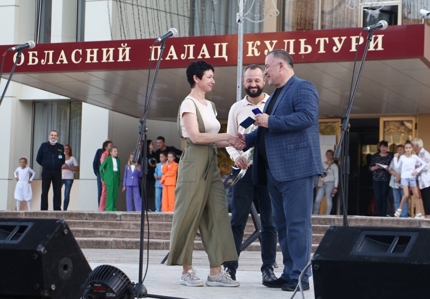 Отмечается, что вице-губернатор Юрий Гранатуров вручил юбилейный знак «30 лет Независимости Украины» руководителю образцового ансамбля танца «Юнги», заслуженному работнику культуры Украины Элле Акмановой.