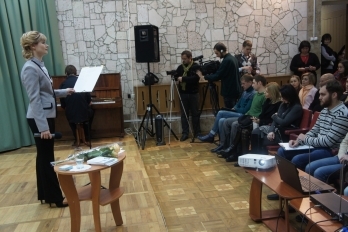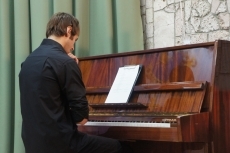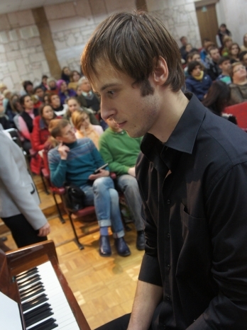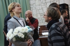 Пьесы для фортепиано музыканта Сергея Бутенко прозвучали самостоятельно и в качестве сопровождения к ее текстам. Сергей и Ольга рассказали слушателям о важнейших темах своего творчества, о взглядах на жизнь, любовь и искусство.