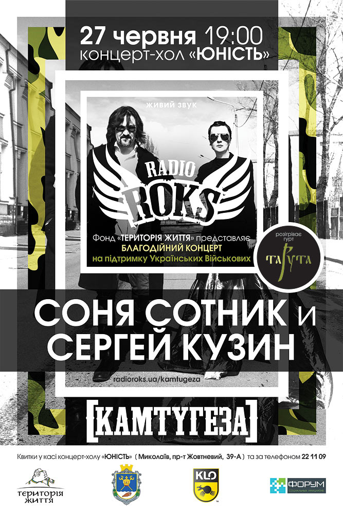 В Николаеве 27 июня в 19:00 горожан приглашают посетить концерт-холл «Юность», чтоб посмотреть концерт Сергея Кузина и Сони Сотник – ведущих утреннего шоу «Камтугеза на радио «ROKS».