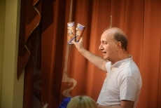 Директор театра Николай Берсон вручил актерам, режиссерам и друзьям театра памятные подарки и сувениры с символикой театра.