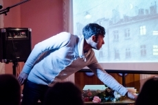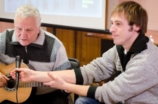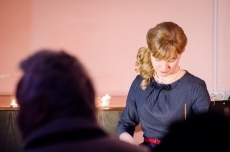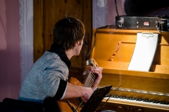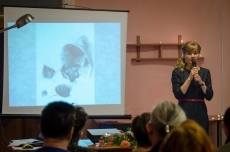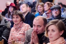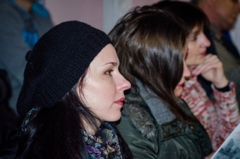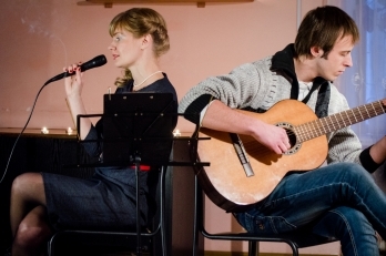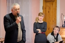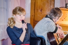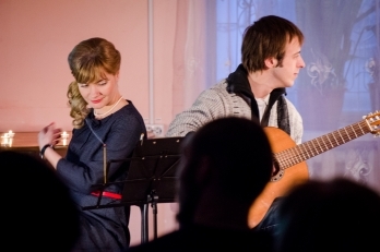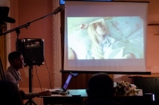 В целом, презентация уложилась в минут 40. Ольга читала произведения из нового сборника, Сергей Бутенко аккомпанировал ей на гитаре и пианино. В перерывах на экране показывали видеоработы с участием поэта.