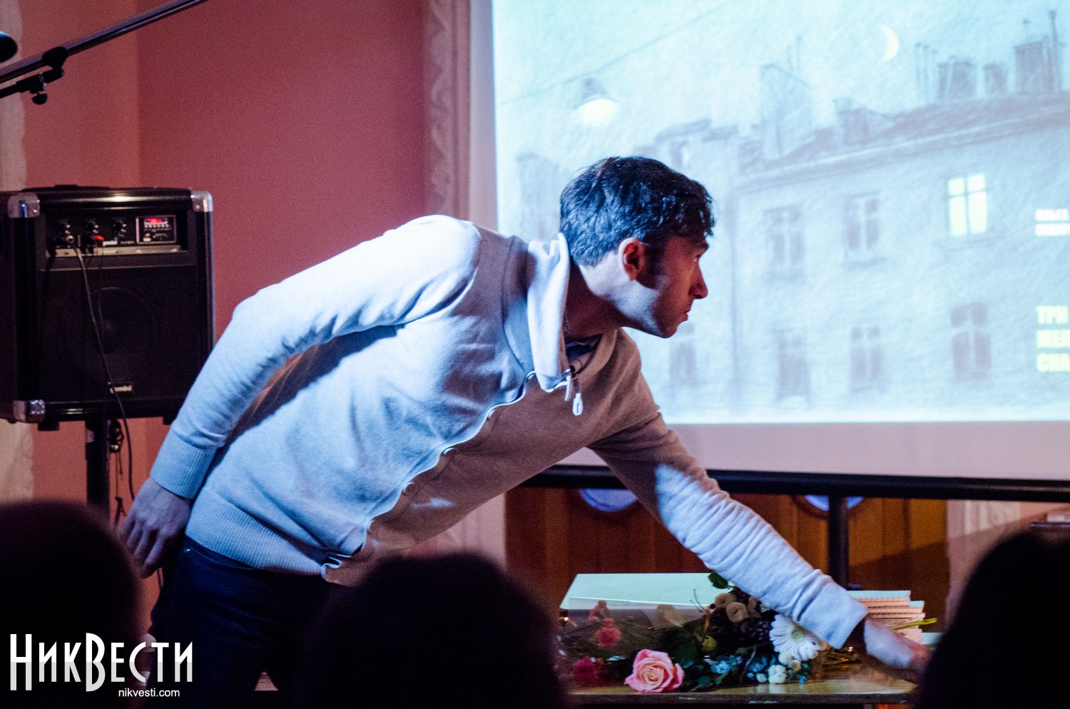 Презентовать «Три желтых сна» помогал николаевский музыкант Сергей Бутенко, ранее уже выступавший на совместных вечерах с Ольгой Сквирской. В плане технического обеспечения «подставил плечо» активист, глава молодежной городской организации «Альтер-спорт» Роланд Байрозян.