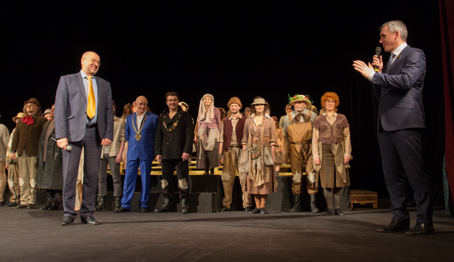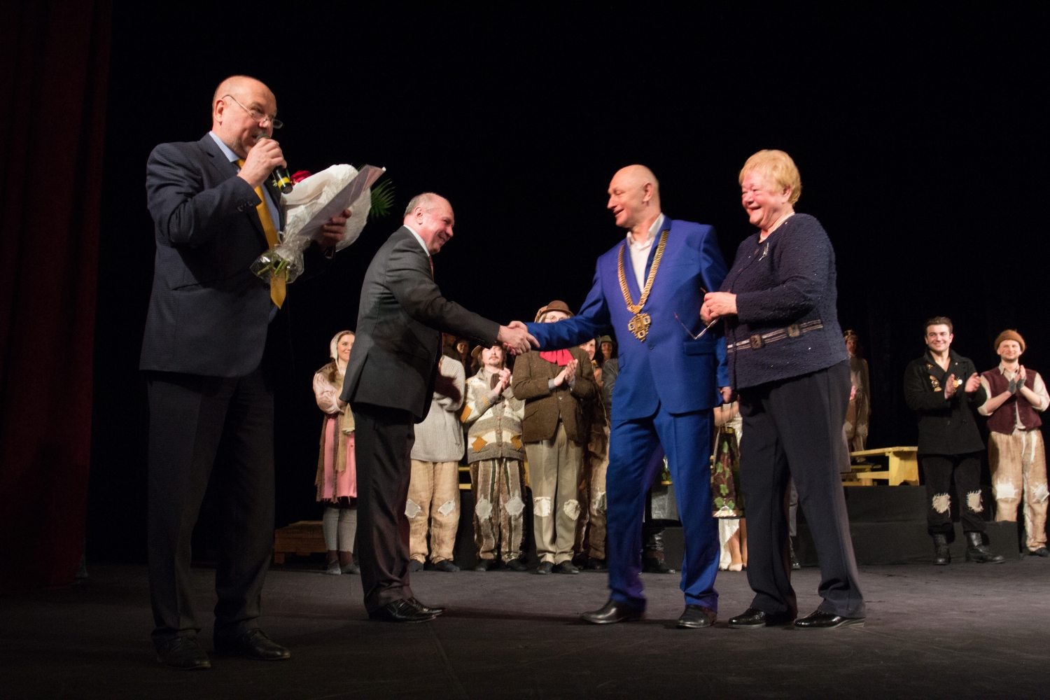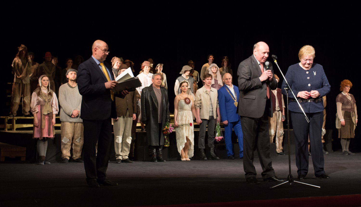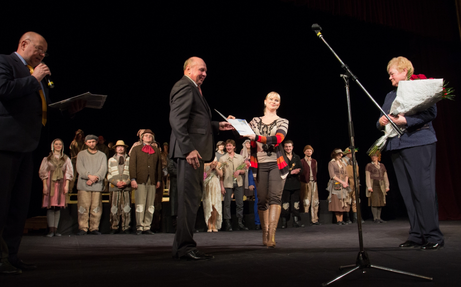А вечером того же дня актеры дали уже плановое представление «Дракона». По окончании спектакля состоялась торжественная часть с награждением работников театра. Коллектив поздравили председатели областного совета профсоюзов Юрий Толмачев и областного комитета профсоюза работников культуры Любовь Назарова.