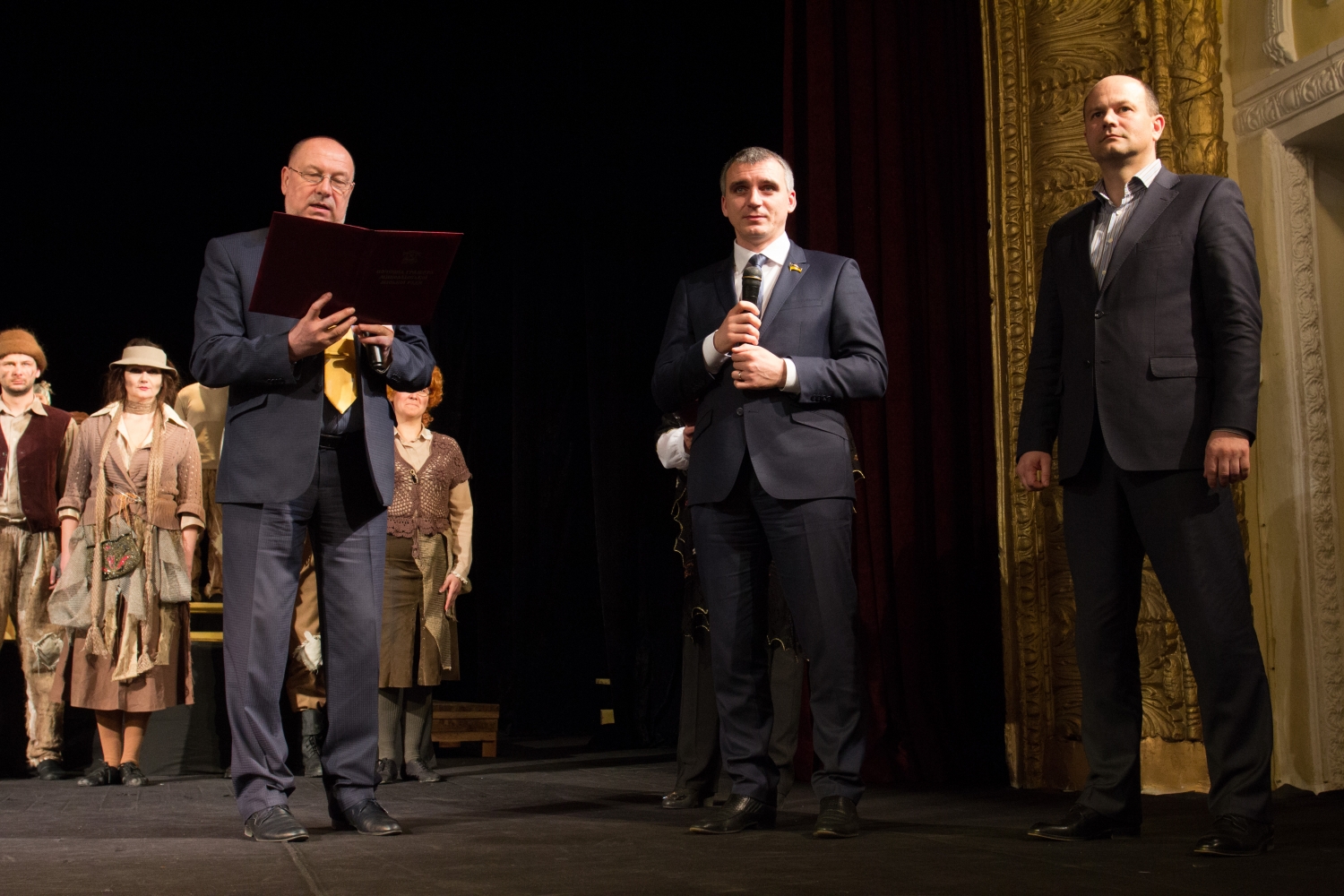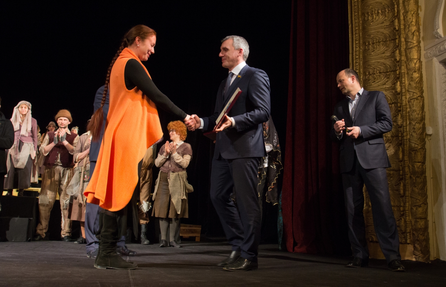 Всего 15 работников театра были отмечены грамотами. Среди них –– народный артист Украины Василий Остафийчук, заслуженная артистка Украины Лидия Гашинская, директор-распорядитель Артем Свистун, руководитель литературно-драматургической части, актриса Марина Васильева, актеры Екатерина Богданова, Татьяна Моджук, Елена Кошевая, Людмила Соколова, Виолетта Мамыкина, Андрей Караев, звукорежиссер Денис Пономаренко.