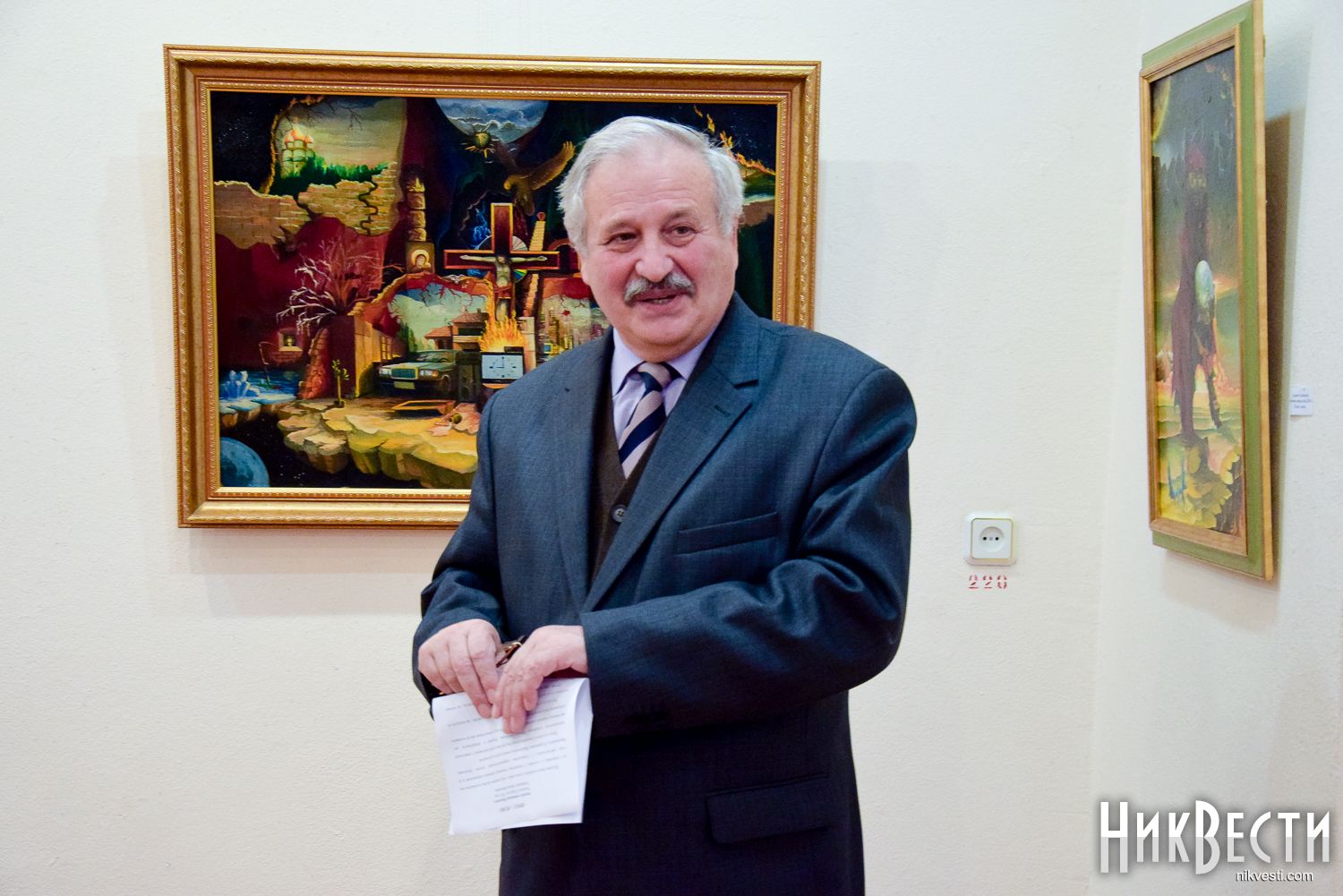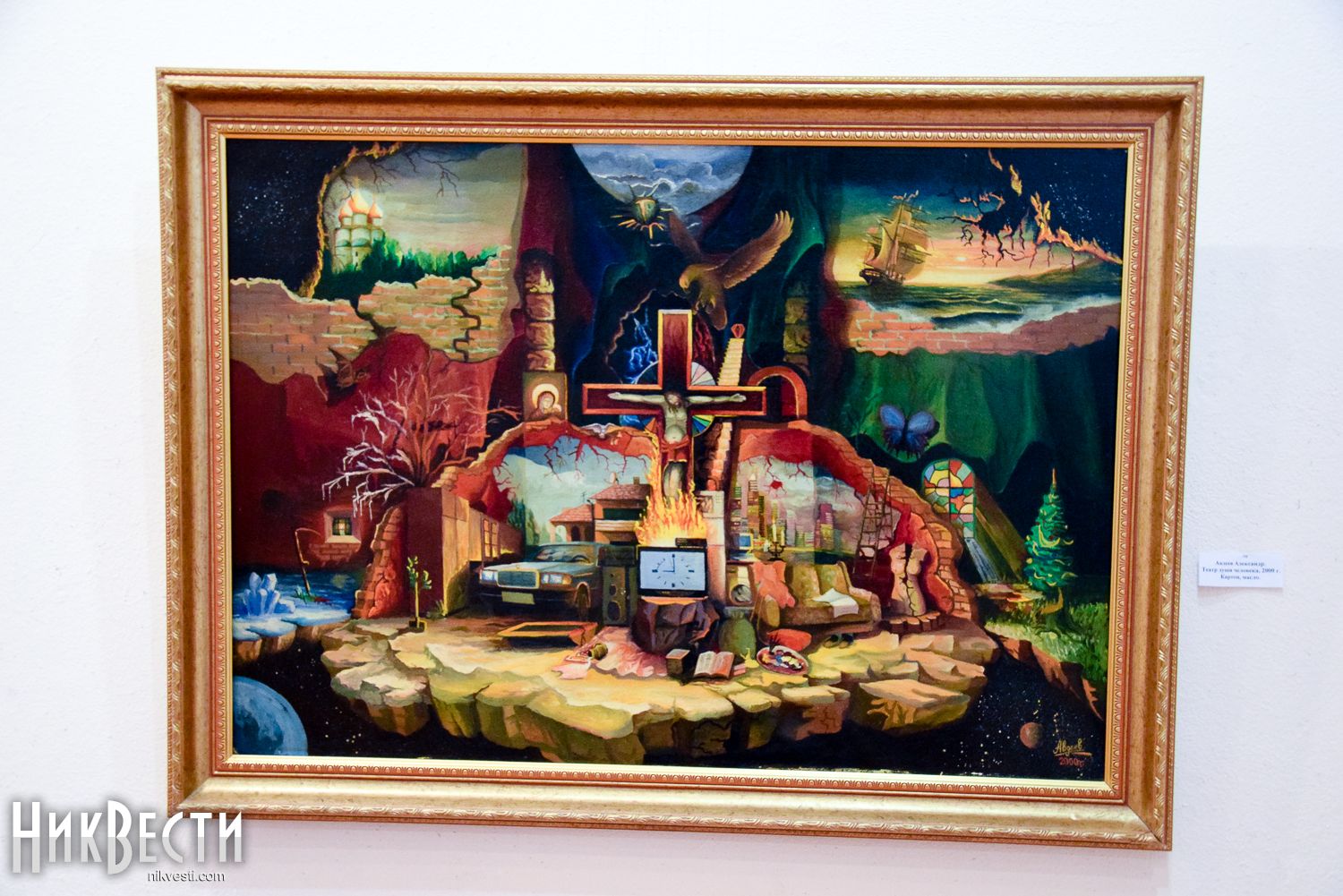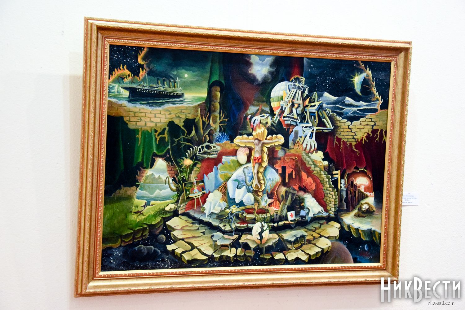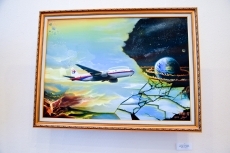 Однако художнику не чужда и современная политическая реальность. На выставке можно увидеть работы, посвященные евроитеграции Украины, аннексии Крыма и сбитому боевиками «Боингу-777», каждая из которых содержательно также несет «вселенский размах».
