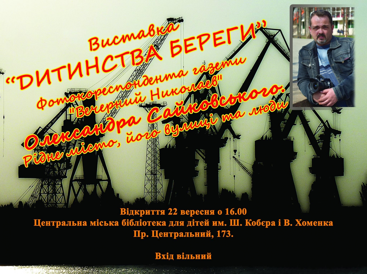 Фотокорреспондент газеты «Вечерний Николаев» Александр Сайковский 22 сентября в Центральной городской детской библиотеке имени Шуры Кобера и Вити Хоменко откроет новую фотовыставку «Детства берега».
