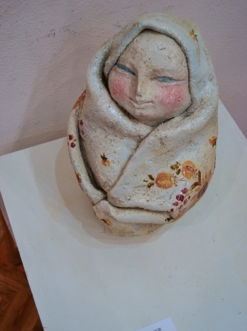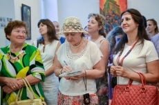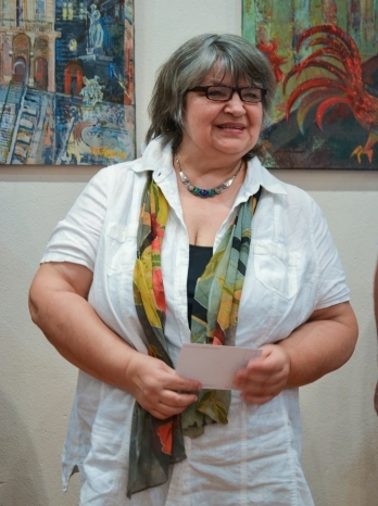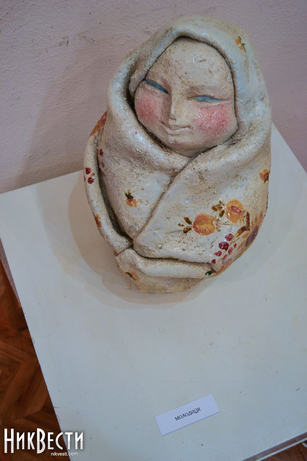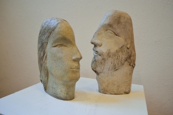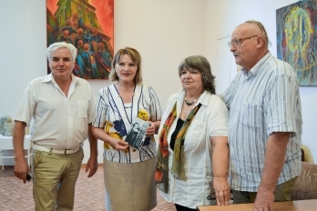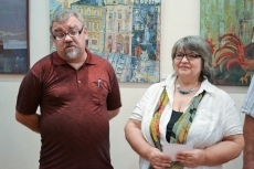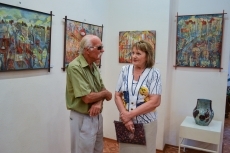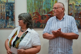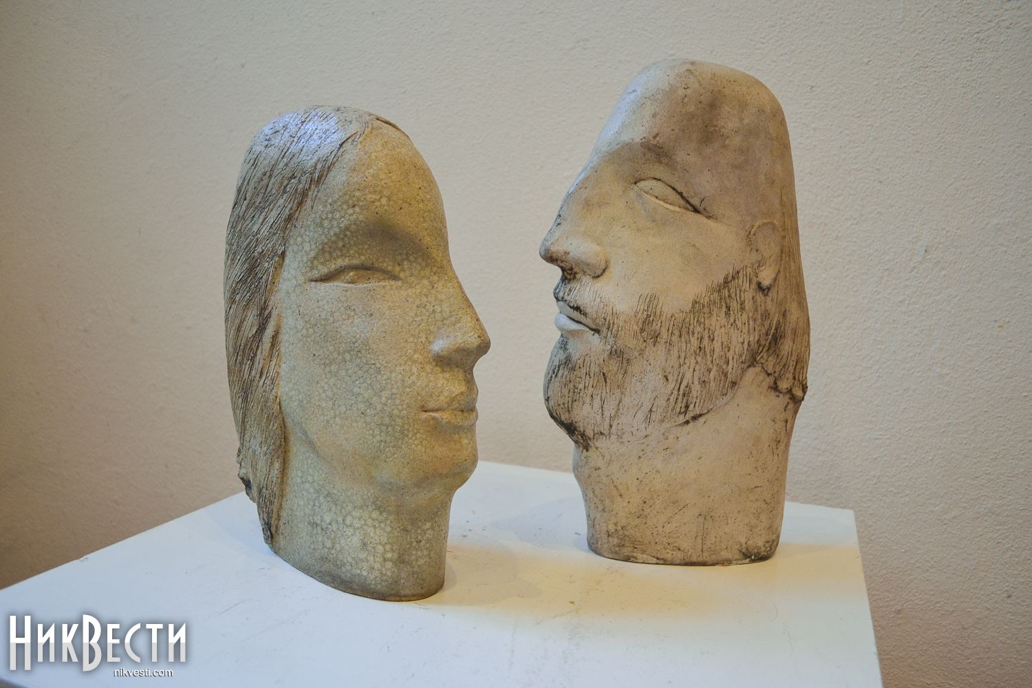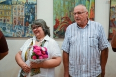 – Муж противился, но мы привезли выставку, которую мы бы хотели назвать Гармония образа. Когда мы делаем где-то совместную выставку, у нас часто спрашивают, как уживаются два художника в одном доме. Хорошо уживаются! Мы друг друга дополняем. То он сказал мне, что я не умею лепить и налепила плоские головы. То я ему говорю, что его синий цвет мне не нравится, а он отвечает: «Какой это синий? Это коричневый». Это очень интересно, – поделилась она.