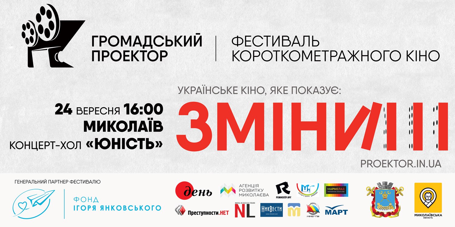Кинорежиссеры из 11 городов Украины в субботу, 24 сентября, привезут свои фильмы на тему «Перемены» в Николаев, на Фестиваль короткометражного кино «Гражданский проектор». Стало известно, что в Николаев, чтобы возглавить жюри, приедет Глава Государственного агентства Украины по вопросам кино Филипп Ильенко.