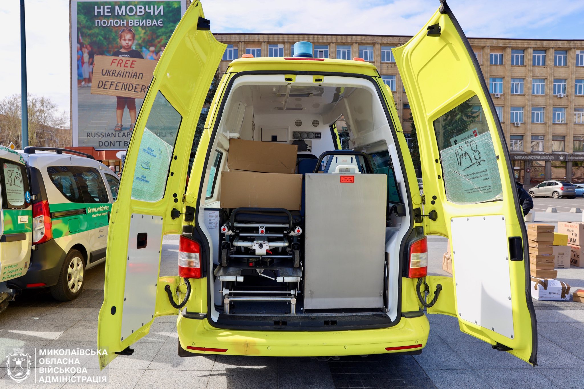 Як повідомили в обласній військовій адміністрації, партнери передали дві машини швидкої допомоги та спеціальний автомобіль для перевезення людей з обмеженою мобільністю.
