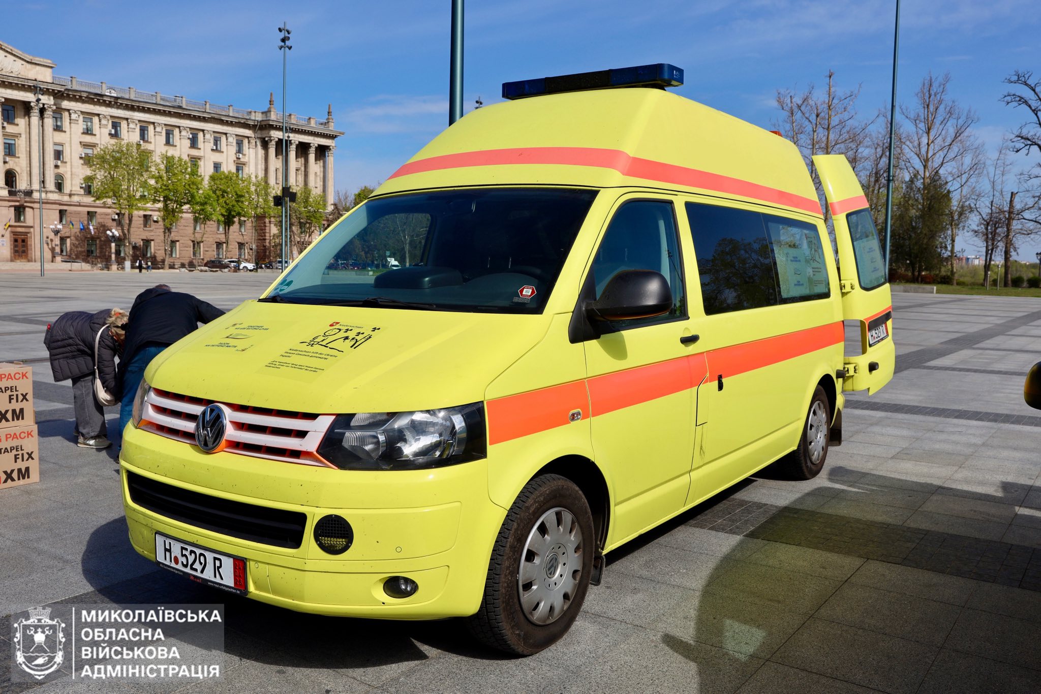 Доставку автомобілів разом із медичним обладнанням організувала Українська греко-католицька церква Святого Володимира в Ганновері. Поїздку координувала Марія Максимців, яка разом із п’ятьма волонтерами, серед яких були лікарі, привезла гуманітарну допомогу до Миколаївщини.