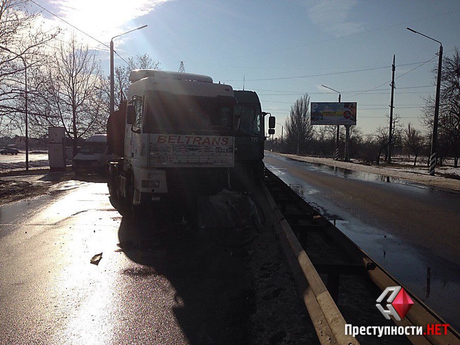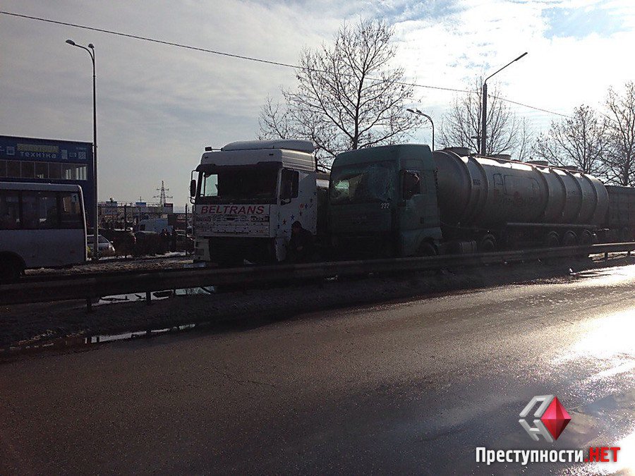 В воскресенье, 15 января, в Николаеве на проспекте Богоявленском (Октябрьском) столкнулись два грузовых автомобиля.