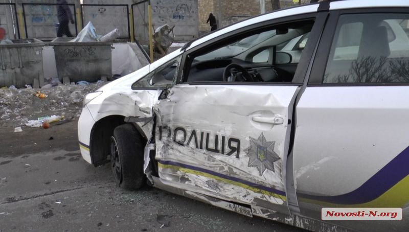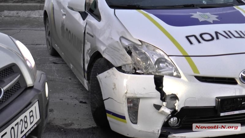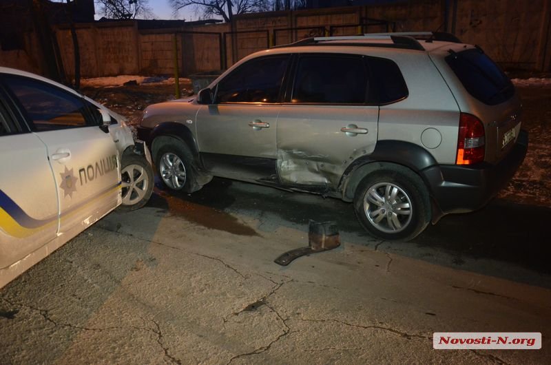 В ночь с воскресенья на понедельник, 30 января, на улице Чкалова в Николаеве, автомобиль SsangYong Rexton врезался в полицейское авто Toyota Prius.