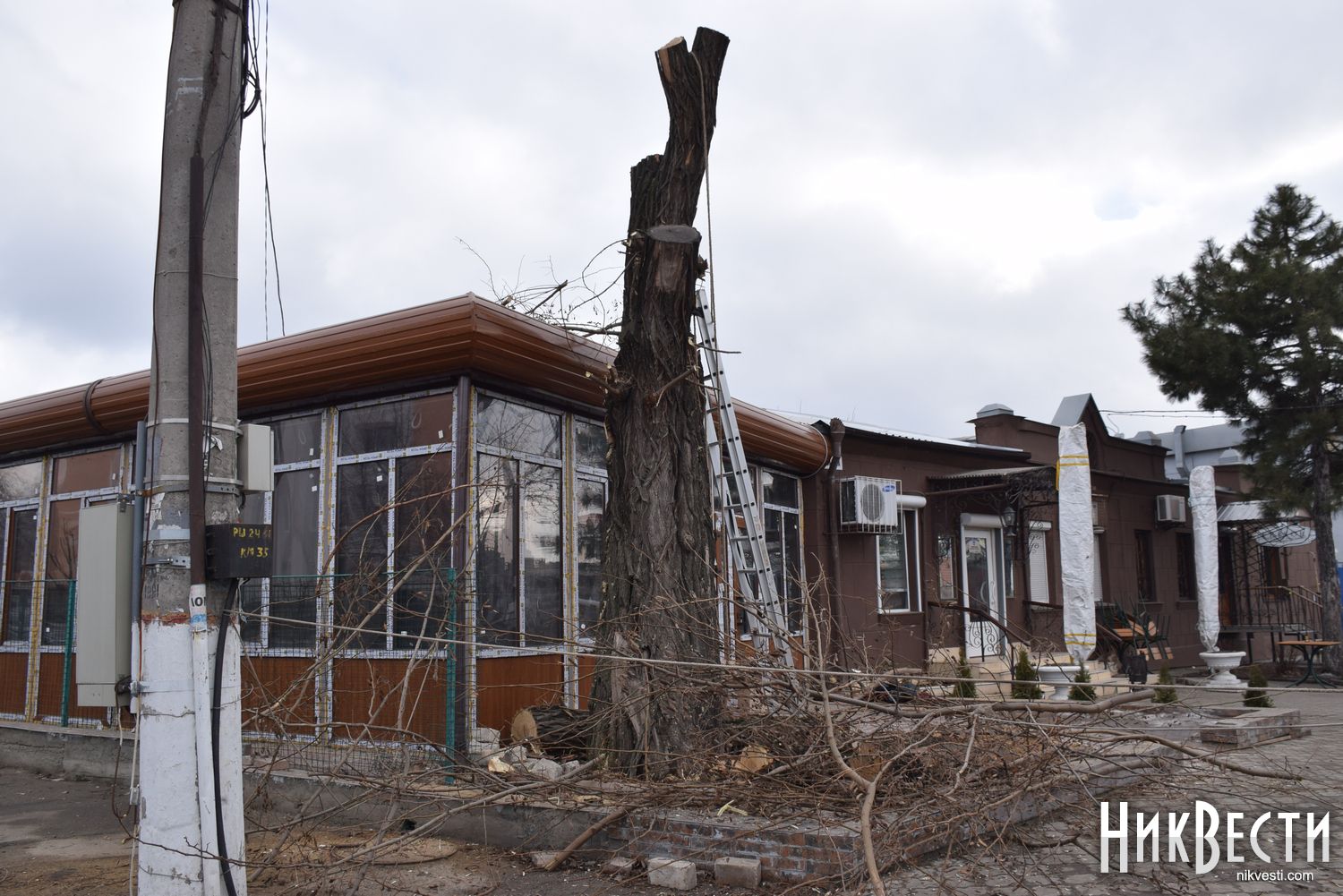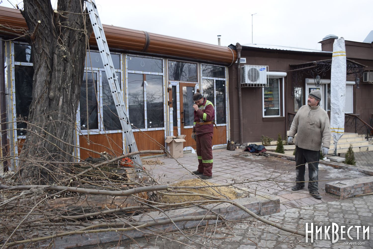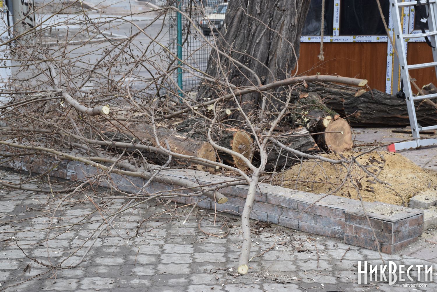 Ранее рабочие спилили четыре здоровые акации ради строительства летней площадки для магазина в Николаеве.