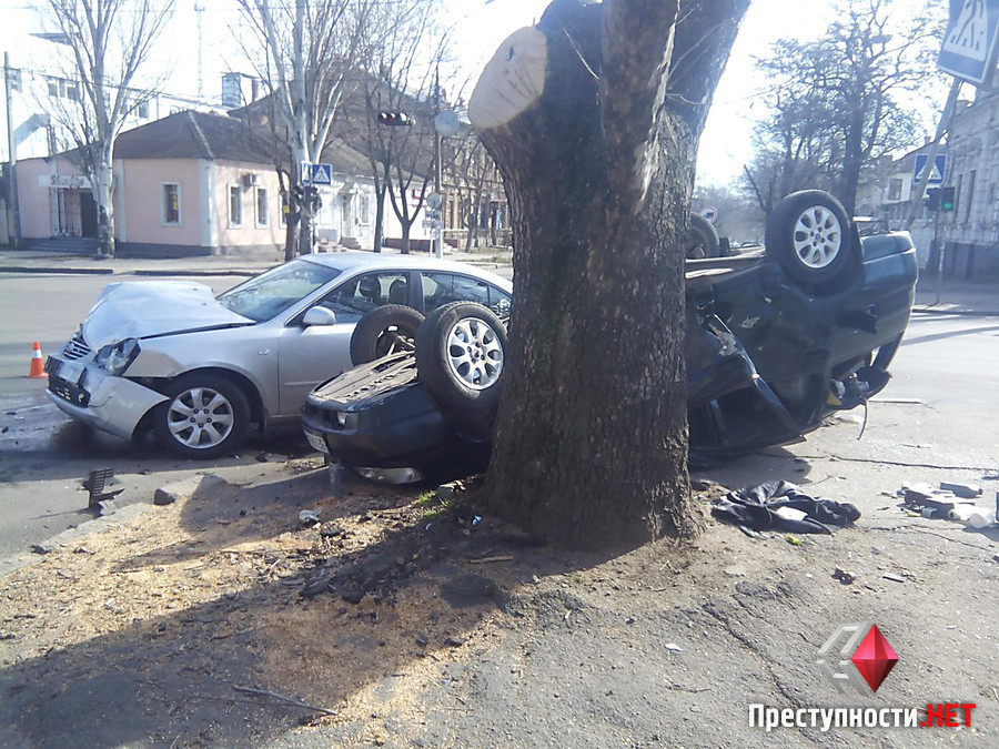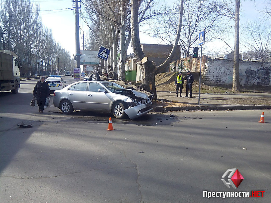В Николаеве «KIA» таранил «ВАЗ», тот перевернулся и врезался в дерево