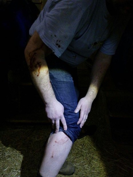 Прибывшие на место полицейские застали мужчину, который имел телесные повреждения в виде рваных и резаных ран правой руки и ноги.