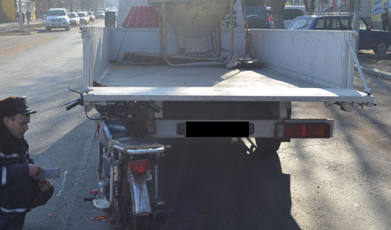На улице Грушевского в Первомайске, 7 марта столкнулся мопед «Альфа» и грузовой автомобиль «Mercedes-Benz Sprinter-313». За рулем мопеда был 14-летний подросток.
