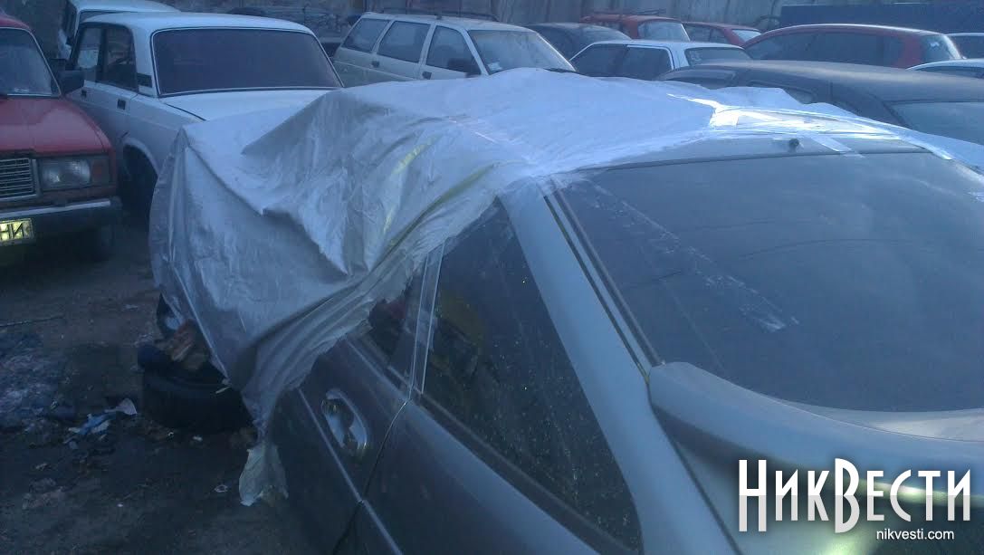 Колесо, динамики, камера, монитор, ремни — в Николаеве на штрафплощадке «обнесли» авто