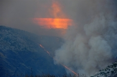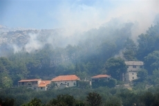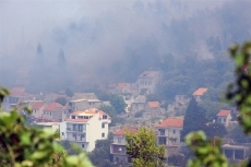 Под воздействием сильных ветров и сухих погодных условий, которые, как ожидается, усилятся, пожар на полуострове Луштица возле города Герцег-Нови распространился к домам и кемпингам.