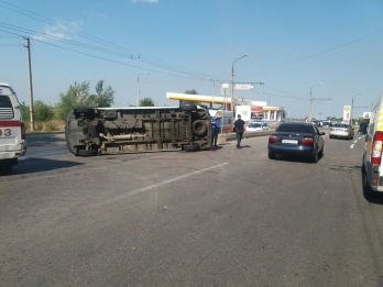 – ДТП произошло на улице Победы. Столкнулись две маршрутки - пассажирская и грузовая. В результате грузовая маршрутка перевернулась на бок. Пострадали около 10 человек - те, что ехали в пассажирской маршрутке, – рассказала она.