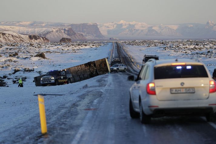 Согласно информации правоохранителей, инцидент произошел в 250 км к востоку от столицы страны Рейкьявика. Автобус столкнулся с автомобилем, в котором находились туристы из Литвы, соскользнул с дороги и перевернулся.