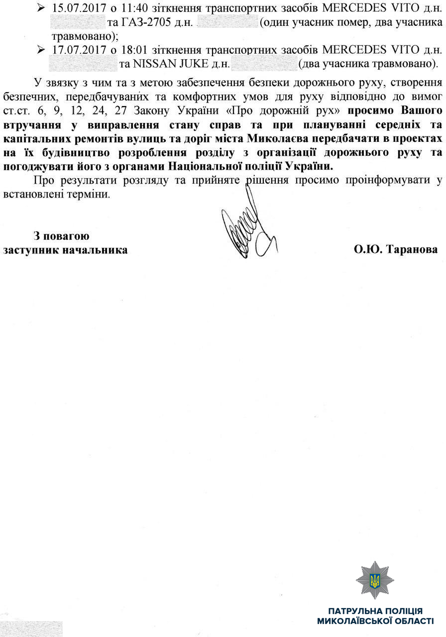 Поэтому правоохранители обратились к руководству Николаевского городского совета с просьбой установить знаки приоритета на перекрестках, где было проведено обновления дорожного покрытия, а в дальнейшем при проведении работ учитывать возникновение подобных ситуаций.