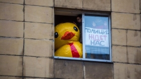 Суд в Санкт-Петербурге арестовал на 25 суток активиста движения «Весна» Артема Гончаренко, который в день «забастовки избирателей» 28 января выставил в окне большую надувную утку.