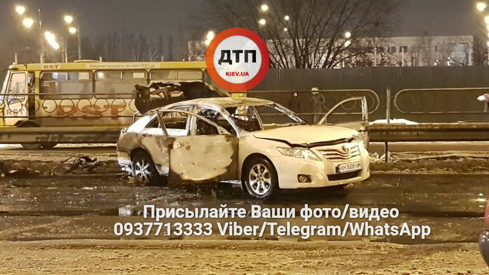 На Броварском проспекте в Киеве возле станции метро «Лесная» взорвались гранаты. В результате инцидента сгорел автомобиль «Тойота Камри», преступники скрылись.