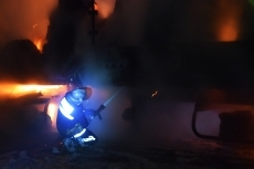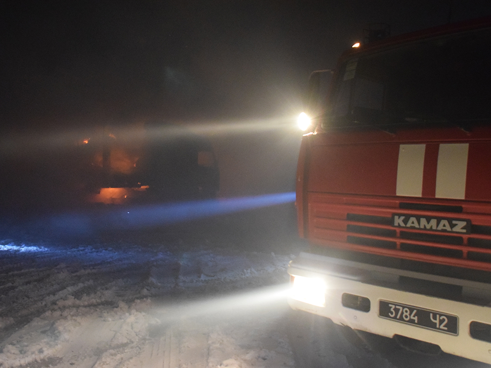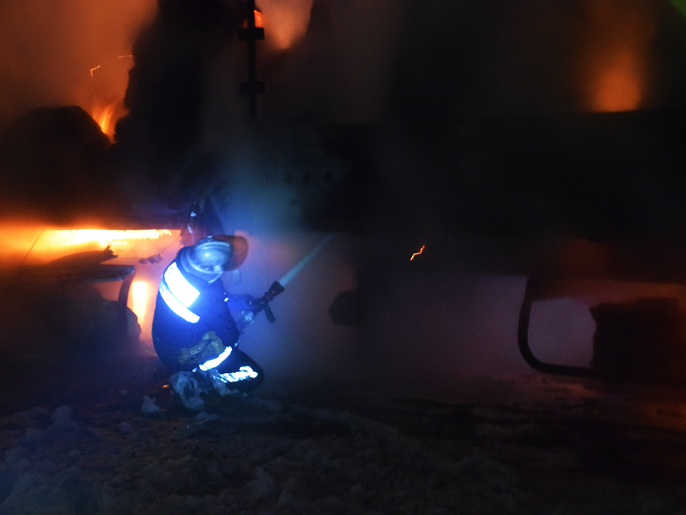 Пожарные оттащили автобус «ПАЗ», который находился рядом с горящим грузовиком, не допустив его возгорания.