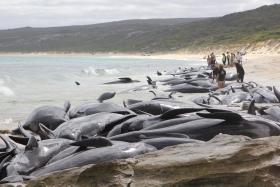 На берег в заливе Хамелин в Западной Австралии выбросились 150 черных дельфинов. По последним данным, в живых осталось не более 15 из них.