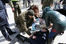 Сотрудники Национальной гвардии, которые рядом несли службу по охране общественного порядка, оказали мужчине первую медицинскую помощь, вызвали скорую помощь и оцепили место происшествия для предотвращения травмирования прохожих.
