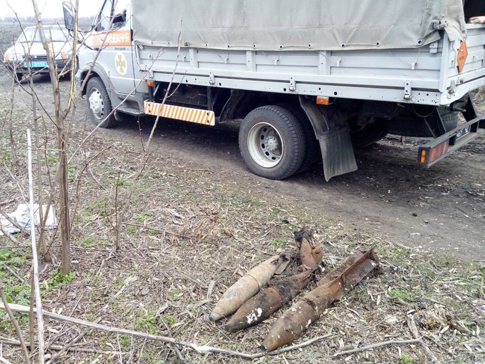Сообщается, что находки времен прошлых войн обнаружили местные жители в Новоодесском районе (вблизи села Баловное) и в Первомайском районе (вблизи села Софиевка). Специалисты ГСЧС квалифицировали боеприпасы как минометную мину калибром 82 милиметра и три авиабомбы АО-25.