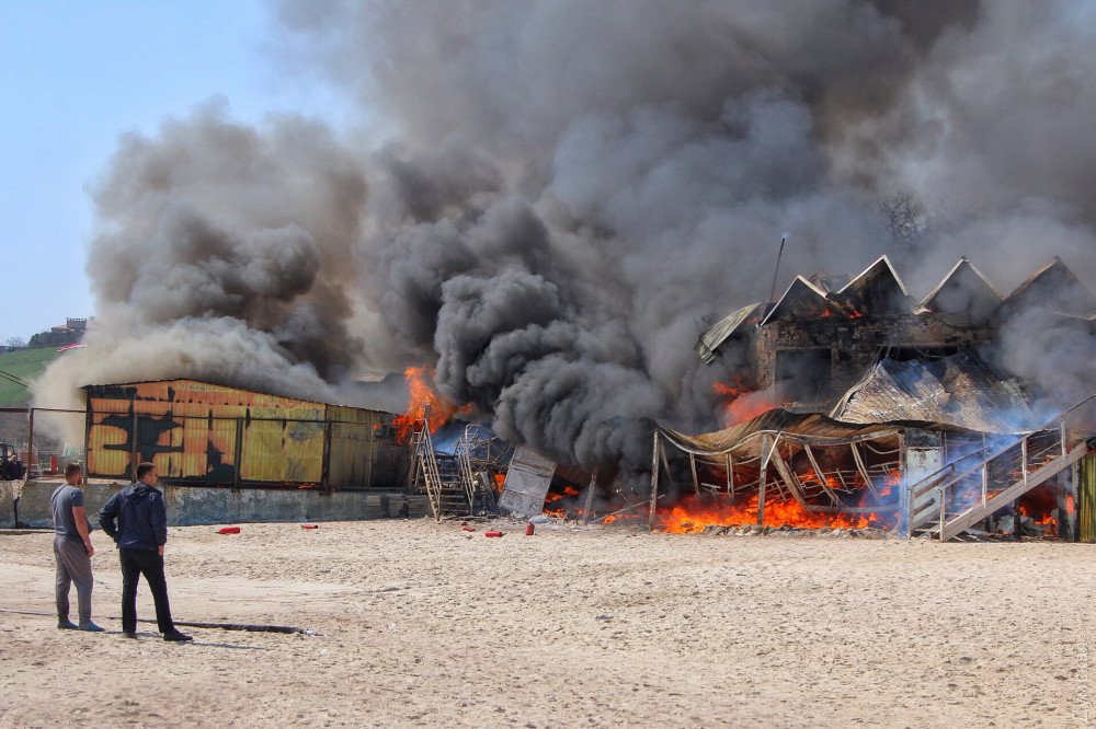 В Одессе в районе 13-й станции Большого Фонтана горел ресторан "Песок", расположенный на пляже.