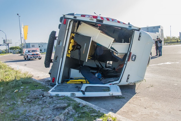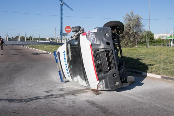 В Киеве, на Столичном шоссе в пятницу, 11 мая, перевернулась машина скорой помощи. Автомобиль медиков, уходя от столкновения с другой машиной, пронесся более сотни метров и перевернулся на бок на парковке торгового центра.