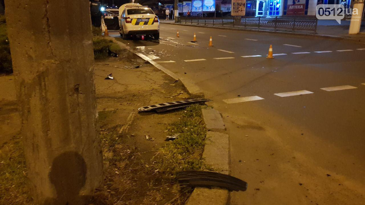 В Николаеве ночью патрульные, догоняя нарушителя, врезались в столб