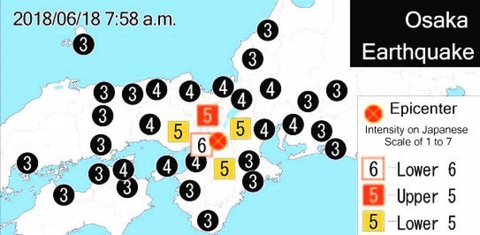 Землетрясение произошло около 08:00 по местному времени в японской префектуре Осака. Позже магнитуда землетрясения была повышена агентством до 6,1.