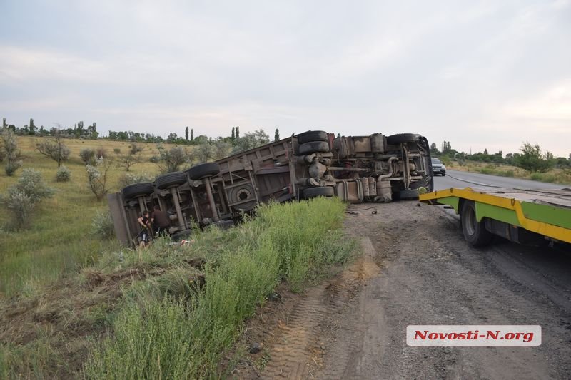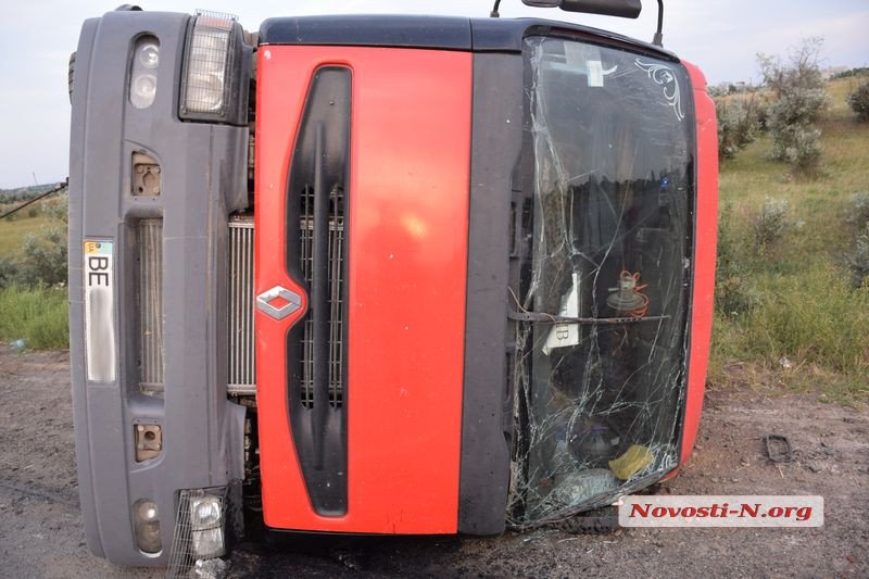 Под Николаевом перевернулся тягач Renault