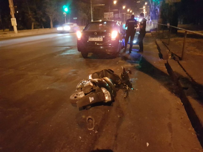 Вечером в понедельник, 27 августа, на проспекте Героев Украины в Николаеве мопедист въехал в легковой автомобиль «Джили».