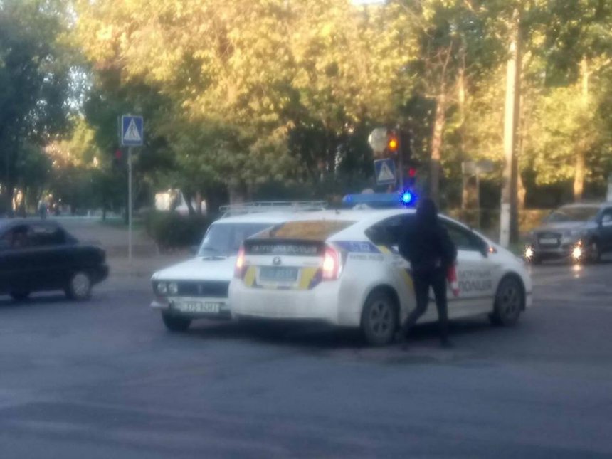 Утром во вторник, 18 сентября, на перекрестке улицы Пушкинская и Адмиральская в Николаеве столкнулись патрульный автомобиль полиции Toyota Prius и ВАЗ 2103.