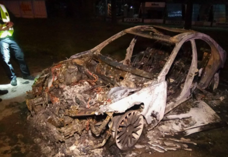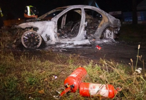 Ночью в Киеве водитель Mercedes S-Class, пытаясь скрыться от полиции, попал в ДТП, в результате которого автомобиль сгорел дотла.